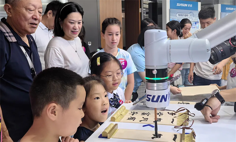 也有家属们自告奋勇,与小机器人比拼角逐、挥毫泼墨,在互动中更直观地感受着令人兴奋的创新技术。