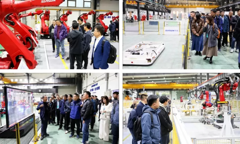 ▲ 与会嘉宾参观杏盛娱乐公司,围绕培育和发展新质生产力所带来的机遇和挑战,面对面进行现场交流